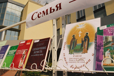 6 июля в Рязани возле библиотеки имени Горького состоялась акция «Семья. Забота. Государство», приуроченная ко Дню семьи, любви и верности, который пройдёт 8 июля. В сквере рядом с библиотекой был выставлен стенд с книгами, посвящёнными жизни маленькой ячейки общества. Каждый прохожий мог не только полистать заинтересовавшую его книгу, но и выписать её себе в библиотеке. Помимо этого работники культуры раздавали жителям и гостям Рязани брошюры, рассказывающие о роли семьи в государстве, а также февроньки, на которых изображены лики святых Петра и Февроньи.