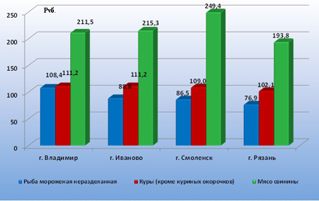 Министерство экономического развития и торговли Рязанской области информирует о результатах анализа цен на социально значимые продовольственные товары в региональных центрах ЦФО России, сообщает . Проведённый анализ показал, что на протяжении длительного времени Рязань занимает устойчивые позиции в рейтинге областных центров ЦФО по основным группам продуктов питания. За период с 14 по 20 августа по цене на мясо кур, мороженую рыбу и свинину Рязань на 9, 10 и 11 месте соответственно.