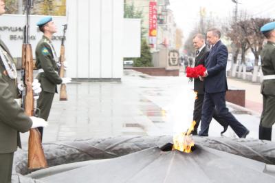 В рамках рабочего визита состоялось возложение цветов к Вечному огню. Красные гвоздики к мемориальному комплексу «Монумент Победы» возложили Александр Беглов и избранный губернатор Рязанской области Олег Ковалёв. В церемонии принял участие Почётный караул Рязанского высшего воздушно-десантного командного училища. После возложения цветов Александр Беглов и Олег Ковалёв провели рабочую встречу, в ходе которой обсудили вопросы социально-экономического развития региона.