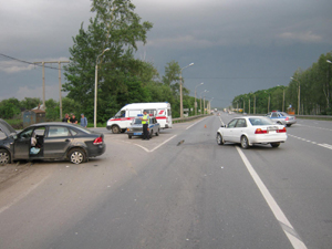 28 мая в 20.25 на 200 километре дороги Москва – Челябинск 37-летний водитель, управляя автомобилем «Volkswagen Polo», двигаясь со стороны Рязани, не убедившись в безопасности своего манёвра, начал осуществлять поворот налево в сторону улицы Лесной. Во встречном направлении ехала «Toyota», под управлением 23-летнего жителя Рязанского района, который, увидев поворачивающий автомобиль, применил экстренное торможение, однако избежать удара не удалось. В результате столкновения 27-летний пассажир первой иномарки получил черепно-мозговую травму и госпитализирован в больницу. Водитель другого авто и 22-летняя пассажирка с травмами были доставлены в больницу скорой медицинской помощи, где им была оказана медицинская помощь.
