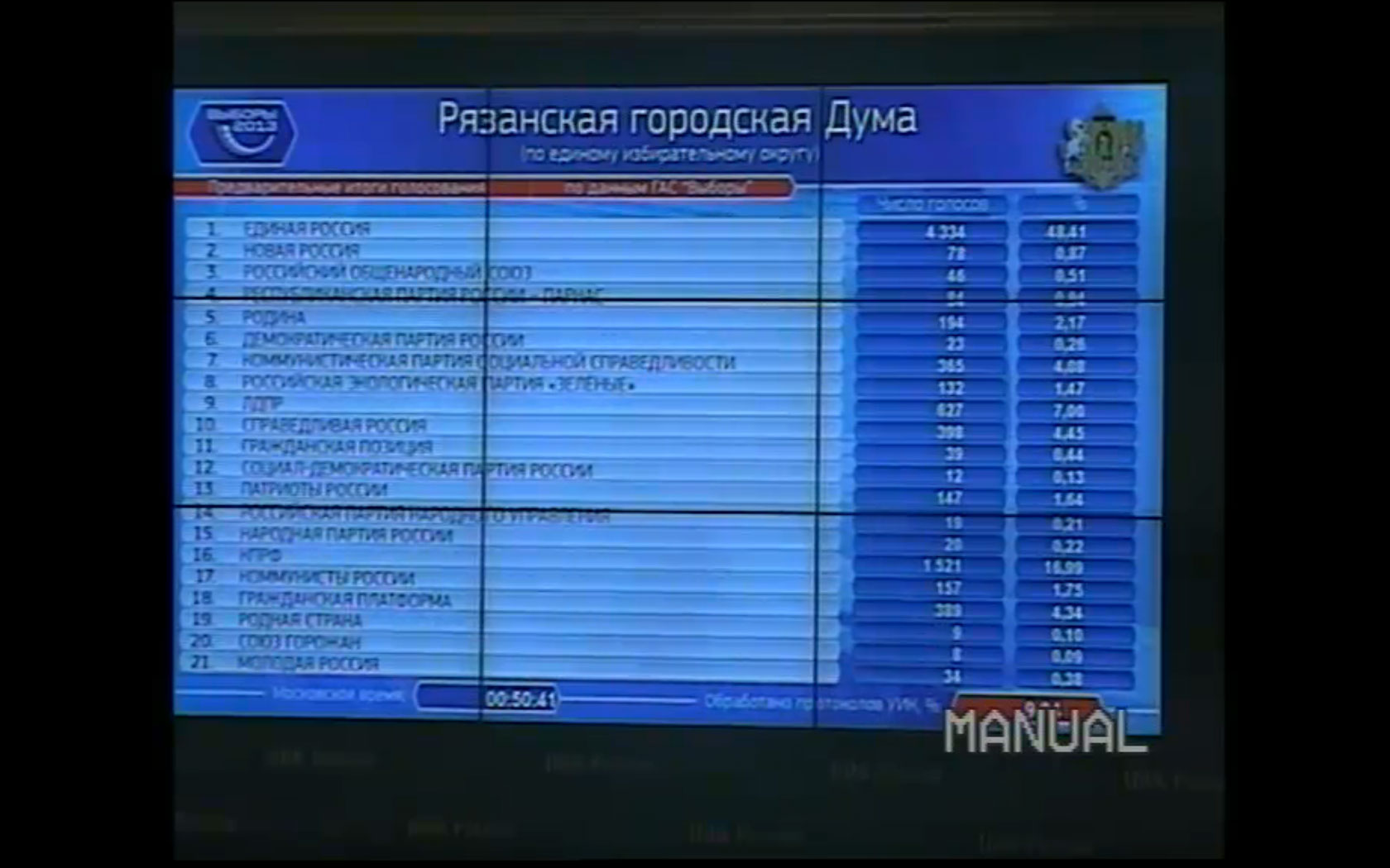 Результаты выборов в Рязгордуму после подсчёта 9% бюллетеней