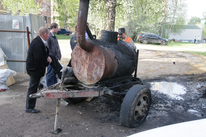 Рабочие, которым принадлежала бочка с гудроном, несмотря на произошедшее, продолжили работу по укладке асфальта во дворе дома. Как пояснили работники милиции, составлявшие протокол произошедшего инцидента, в ближайшее время следствием будет принято решение о процессуальных действиях.