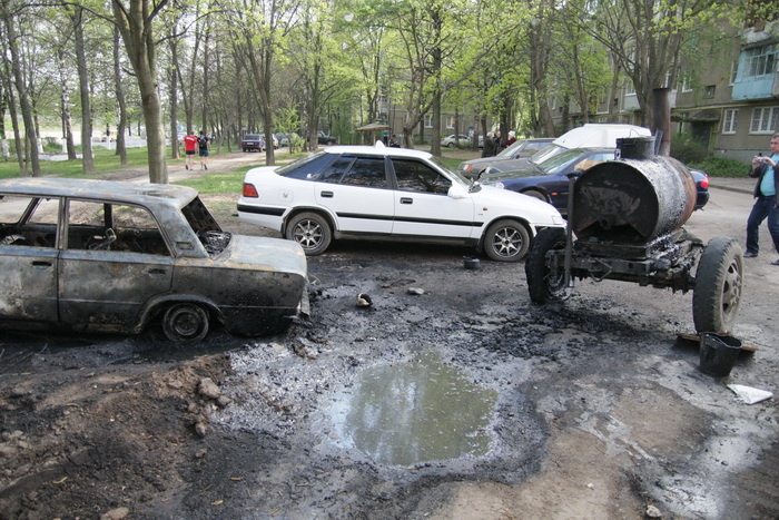 По словам работников милиции, это случилось в 16.15. Вследствие попадания расплавленного гудрона на багажник автомобиля произошло воспламенение бензобака. По словам очевидцев, взрывом бензина выбило стёкла машины, и она загорелась полностью. Владелец автомашины находился в этот момент дома и не пострадал. Он сообщил, что будет обращаться с исковым заявлением о возмещении ущерба в суд.