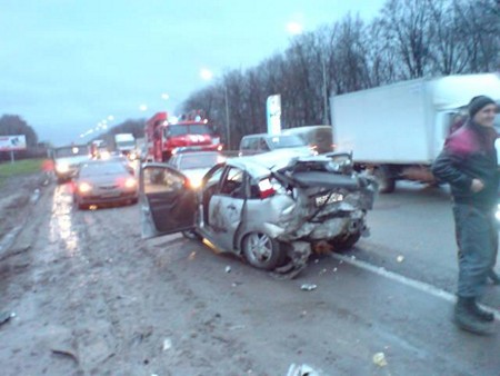 На рязанском участке М5 расплющило два Ford