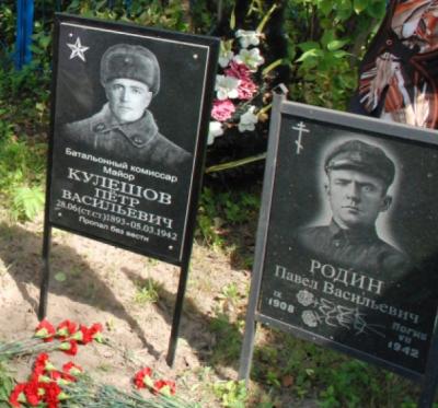 В торжественной церемонии в Ульяновском районе Калужской области приняла участие официальная делегация Рязанской области, в составе которой — правнучка, внук и дочь Петра Васильевича. В настоящее время место захоронения Петра Кулешова, который родился 28 июня в 1893 года в селе Белоречье Сараевского района Рязанской области, так и не установлено. Из документов известно, что майор пропал без вести 5 марта 1942 года в районе деревни Веснины Ульяновского района. Но работа военного комиссариата Калужской области и калужских поисковиков по установлению судьбы рязанского офицера-политрука продолжается.