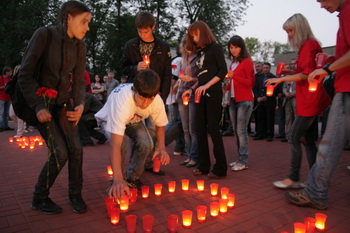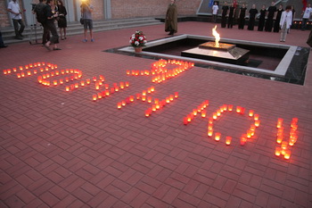 Пламя, зажжённое от Вечного огня на площади Победы было доставлено к Скорбященскому мемориальному комплексу, где от него зажгли несколько сотен свечей. После минуты молчания присутствующие возложили цветы к Вечному огню на Скорбященском мемориальном комплексе.
