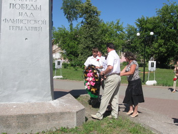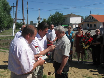 Дале колонна проследовала к мемориалу погибшим в горячих точках Афганистана и при ликвидации последствий аварии на Чернобыльской АЭС, где первый заместитель главы района И.В. Собчаков вручил памятные медали троим ликвидаторам-«чернобыльцам», проживающим на территории района, а затем участники шествия двинулись к братским могилам спасского кладбища, где также к обелиску легли живые цветы и венки.