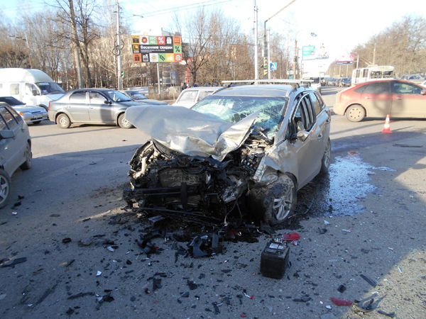 Как областная ГИБДД, 14 марта в 15.35 у д.65 по улице Октябрьская Рязани произошло столкновение четырёх транспортных средств. В ходе первоначальных действий на месте ДТП, было установлено, что 46-летний водитель, управляя автомобилем Kia Ceed, двигаясь со стороны проезда Шабулина в сторону Московского шоссе, проезжая на запрещающий сигнал светофора совершил столкновение с автомобилем Volkswagen Tiguan, под управлением 29-летнего водителя. После чего произошло столкновение с автомобилями Honda CR-V и ВАЗ-2114. В результате ДТП водители автомобилей Kia Ceed, Volkswagen Tiguan и Honda CR-V получили различные травмы и с места происшествия были доставлены в больницу.