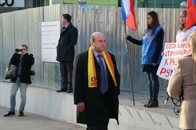 Депутат Рязанской областной Думы Михаил Кривцов напомнил митингующим, что «Крым является святыней для всей России, а русские своих не сдают».