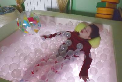 С помощью переданного сенсорного оборудования занятия с детьми станут ещё продуктивнее. В бассейне с шариками дети не только расслабляются и снимают уровень тревожности и агрессии, но также и выполнят специальные упражнения для уменьшения спастики в суставах и мышцах, после чего двигаться становится легче. Занятия с воздушнопузырьковой колонной также важны для психофизического состоянии детей. А ещё её применяют в занятиях со слепыми и слабовидящими детьми. Несмотря на слепоту — дети слышат шум и поворачиваются на колонну, а некоторые даже видят силуэт. Фиброоптические волокна, световой стол — всё это важно и нужно для реабилитации детей и применяется в комплексе с занятиями по обучения различным навыкам.