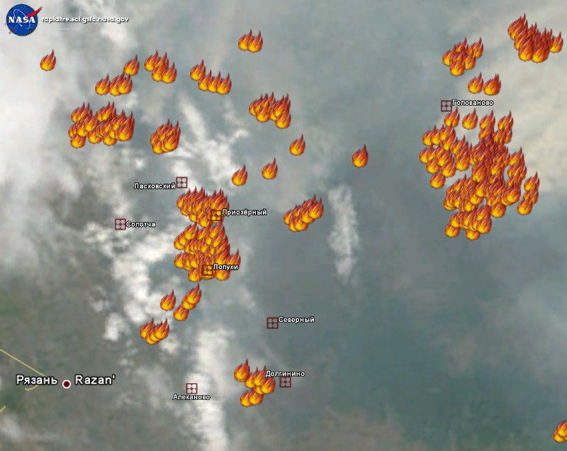 Ситуация с пожарами в Рязанской области остаётся сложной (данные NASA)