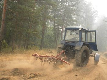 На данный момент группа тушения обеспечена необходимой техникой. В работах они используют водовозку и трактор с бочками на 9 тонн воды. МЧС выделило им пожарную машину. Также на данном участке работает большой артиллеристский тягач, который делает защитные полосы вокруг учебного центра, чтобы снизить риск подступа огня к его территории.