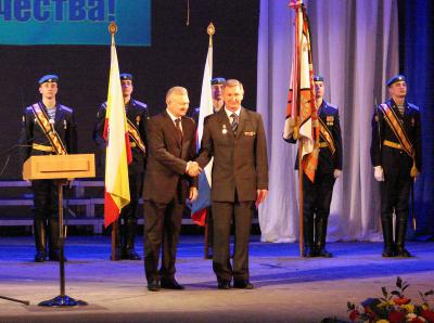 В преддверии праздника Олег Ковалёв и Анатолий Концевой вручили региональные и ведомственные награды. Мероприятие завершилось концертом.