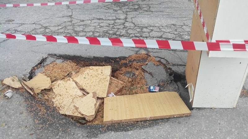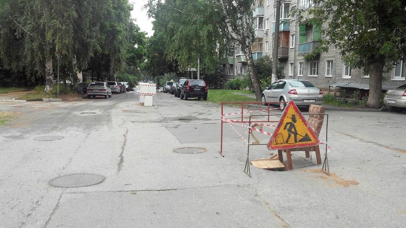 Ямы на улице Скоморошинской огородили мебелью и холодильником