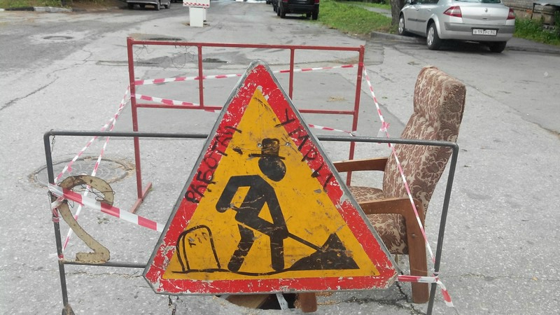 Провалы асфальта на проезжей части улицы Скоморошинской в Рязани, образовавшиеся 17 июля, огородили старым холодильником, кухонным гарнитуром и домашним креслом. Соответствующие фотографии обнародовал паблик «Подслушано у Водителей Рязани» в соцсети «ВКонтакте». Напомним, ямы после дождей появились также на улицах Щедрина и Свободы.