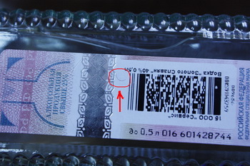 Оперативники установили поставщика данной продукции и под видом покупателей договорились о встрече. Она состоялась 6 октября в полдень на улице Свободы. С собой предприниматель привёз десть ящиков водки «Золото Славян», которые намеревался реализовать за 29 рублей за бутылку. Продавца задержали. На изъятых бутылках видно, что акцизные марки явно поддельные. Видимо, при сканировании на оригинал попала ворсинка, которая в дальнейшем отпечаталась и размножилась на всех фальшивках.