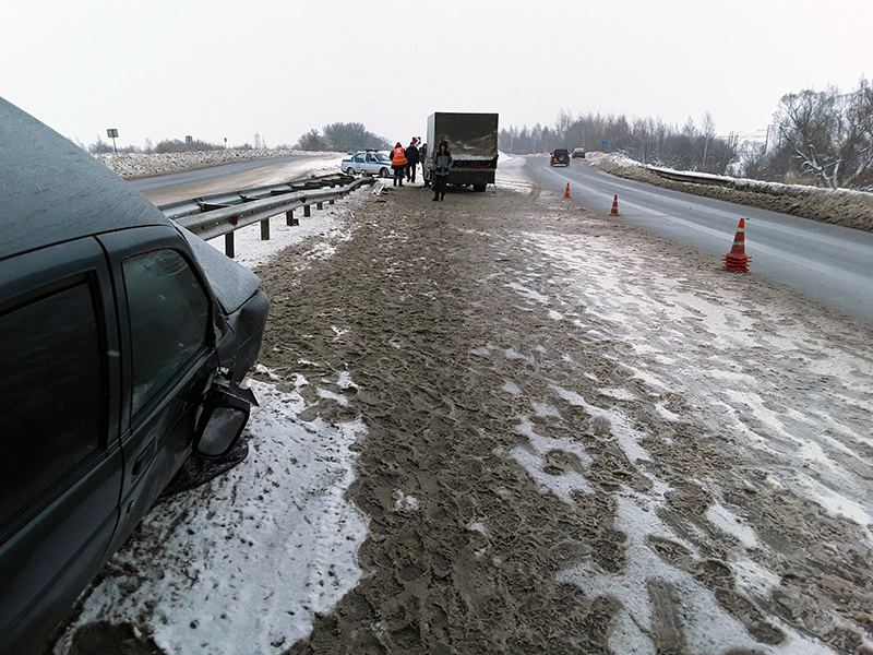 Портал регионального Управления МВД о том, что 14 января около 14.00 на 226-м километре федеральной трассы М5 «Урал» в Спасском районе 39-летний житель Саратовской области, ехавший на автомашине «Лада Приора», по предварительным данным, выбрал небезопасную скорость движения, не учёл погодные условия и не справился с управлением, из-за чего вылетел на встречку, где по касательной столкнулся с автомобилем «Газель», находившимся на проезжей части возле отбойника. После этого легковушка сбила дорожных рабочих, ремонтирующих барьерное ограждение, а затем врезалась в снегоуборочную автомашину Volvo и въехала в отбойник. В результате три дорожных работника, а также водитель «Газели» получили травмы, им оказали помощь медики.