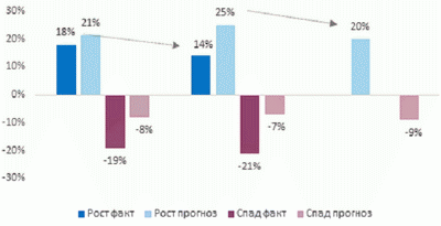 Фактические и ожидаемые изменения выручки в секторе МСБ