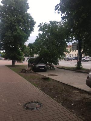 Дерево упало на автомобиль на улице Вокзальной в Рязани