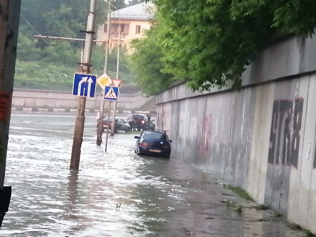 , рязанцы сообщили, что в результате ливня затопленными оказались участки улицы Интернациональной в Канищево, Касимовского шоссе, улицы Советской Армии, перекрёсток у гипермаркета «Глобус».
