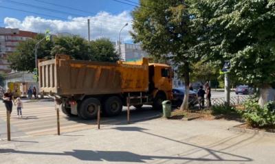 В центре Рязани большегруз протаранил легковушку