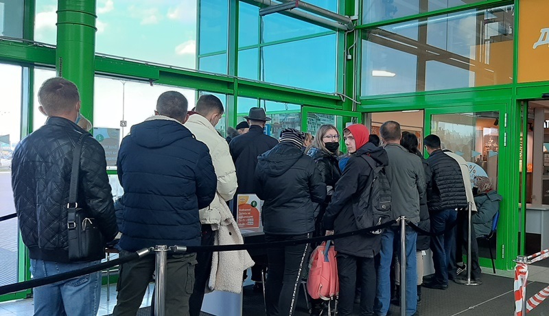 В гипермаркете «Глобус» для желающих вакцинироваться организовали отдельную очередь, там наблюдается большое скопление людей. Ранее сообщалось, что отдельный вход в прививочных пункт организован в ТРЦ «М5 Молл».