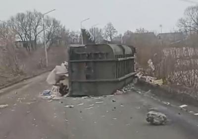 Близ Рыбного опрокинулся прицеп мусоровоза