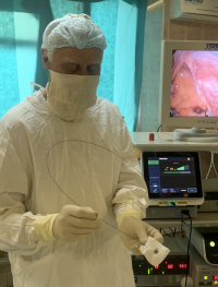 «Чтобы достичь места патологии, применили малоинвазивную технологию без разрезов. Для иссечения оболочки кисты использовали ультразвуковой скальпель, а для надёжной коагуляции ложа кисты — лазер», — рассказал врач-хирург, ответственный за оперативную и диагностическую деятельность ОКБ Владимир Юдин.