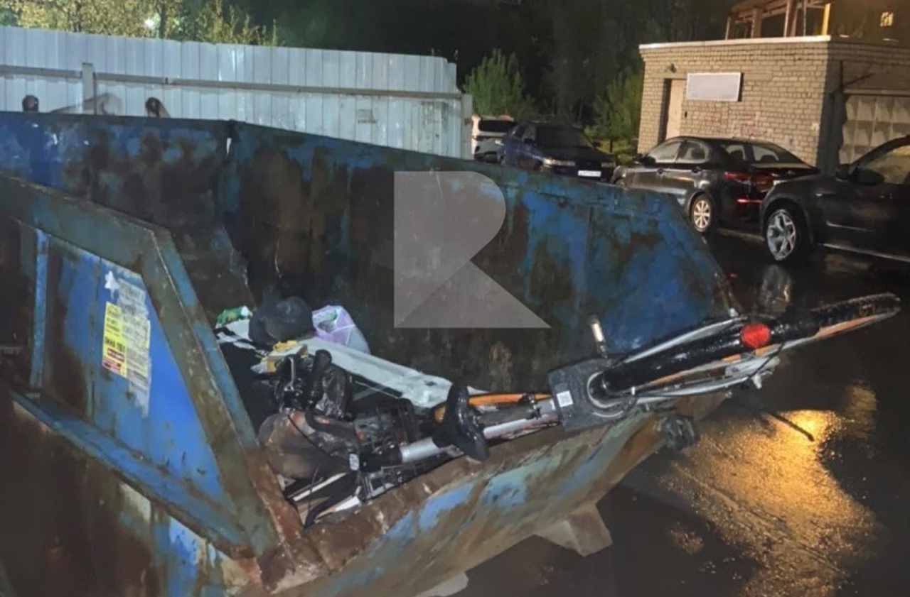 В Рязани прокатный велосипед «припарковали» в мусорный бак