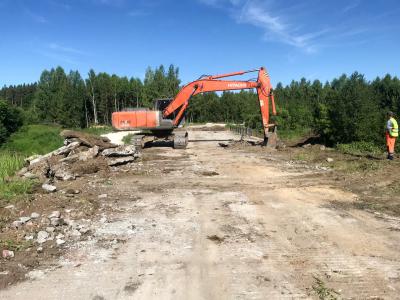 В настоящее время специалисты подрядной организации ведут работу по устройству и усилению береговых опор. Позже рабочие начнут монтировать балки пролётного строения, выполнят устройство слоя из железобетона и рулонной изоляции, а также уложат асфальтобетонное покрытие.