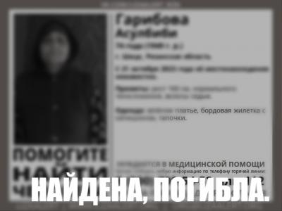 Пропавшая в Шацке 74-летняя женщина найдена мёртвой