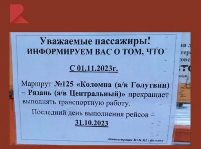 Рязанцы больше не смогут попасть в Коломну на автобусе