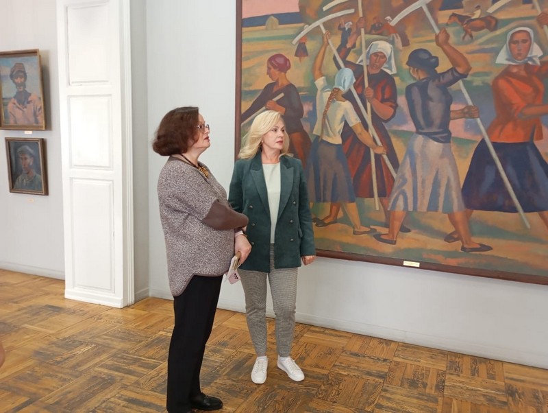 Подробно о праздничных мероприятиях, которые будут проходить в течение всего юбилейного года, рассказали Виктория Филиппова и Ирина Павлова. С 24 апреля в галерее работает биографическая выставка «Человек родился…», где представлены монументальные полотна Виктора Иванова, среди которых «Семья. 1945 год», «Человек родился», «Крещение», «На покосе», «Косцы», «Молодая мать».