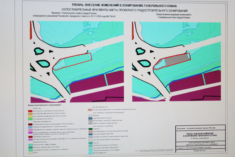 В связи с намечаемым размещением на территории участка снегоплавильной установки в Генплан Рязани планируется внести изменения в части изменения функционального зонирования с зоны пойменных ландшафтов рек Оки и Трубежа на зону объектов инженерной инфраструктуры. Кроме того, в Правила землепользования и застройки планируется внести изменения в части изменения границ территориальных зон: с природно-рекреационной зоны поймы рек Оки и Трубежа на зону объектов инженерной инфраструктуры относительно этого же участка.
