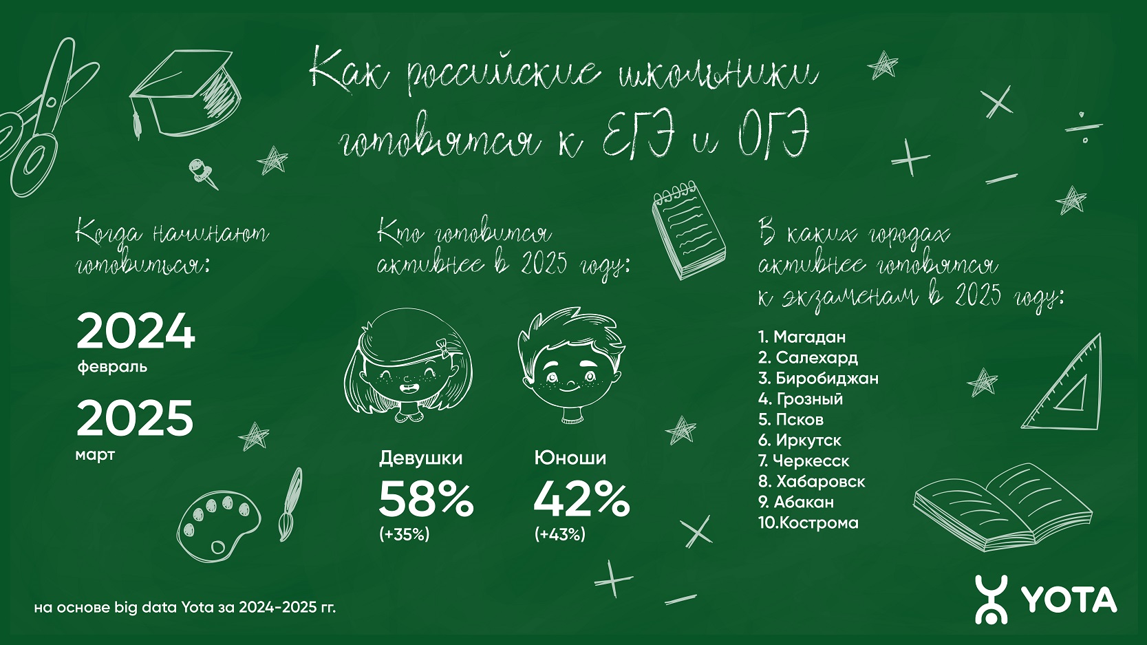 В России активнее всего к экзаменам онлайн готовятся школьники из Магадана, Салехарда, Биробиджана, Грозного и Пскова — эти города лидируют по среднему трафику, который пользователи тратили на образовательных ресурсах.