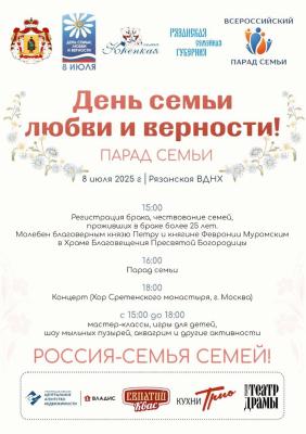 Начало мероприятия в 15.00. Также в программе поздравления семей, церемонии бракосочетания. Будут работать мастер-классы, интерактивные площадки и выставки. В 18.00 выступит хор Сретенского монастыря.