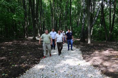 Виталий Артёмов сообщил, что благоустройство Лесопарка ведётся по графику, объём выполнения составляет 50%. Срок завершения работ — 15 августа.