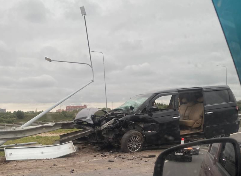 На Северной окружной дороге Рязани иномарку размазало по отбойнику