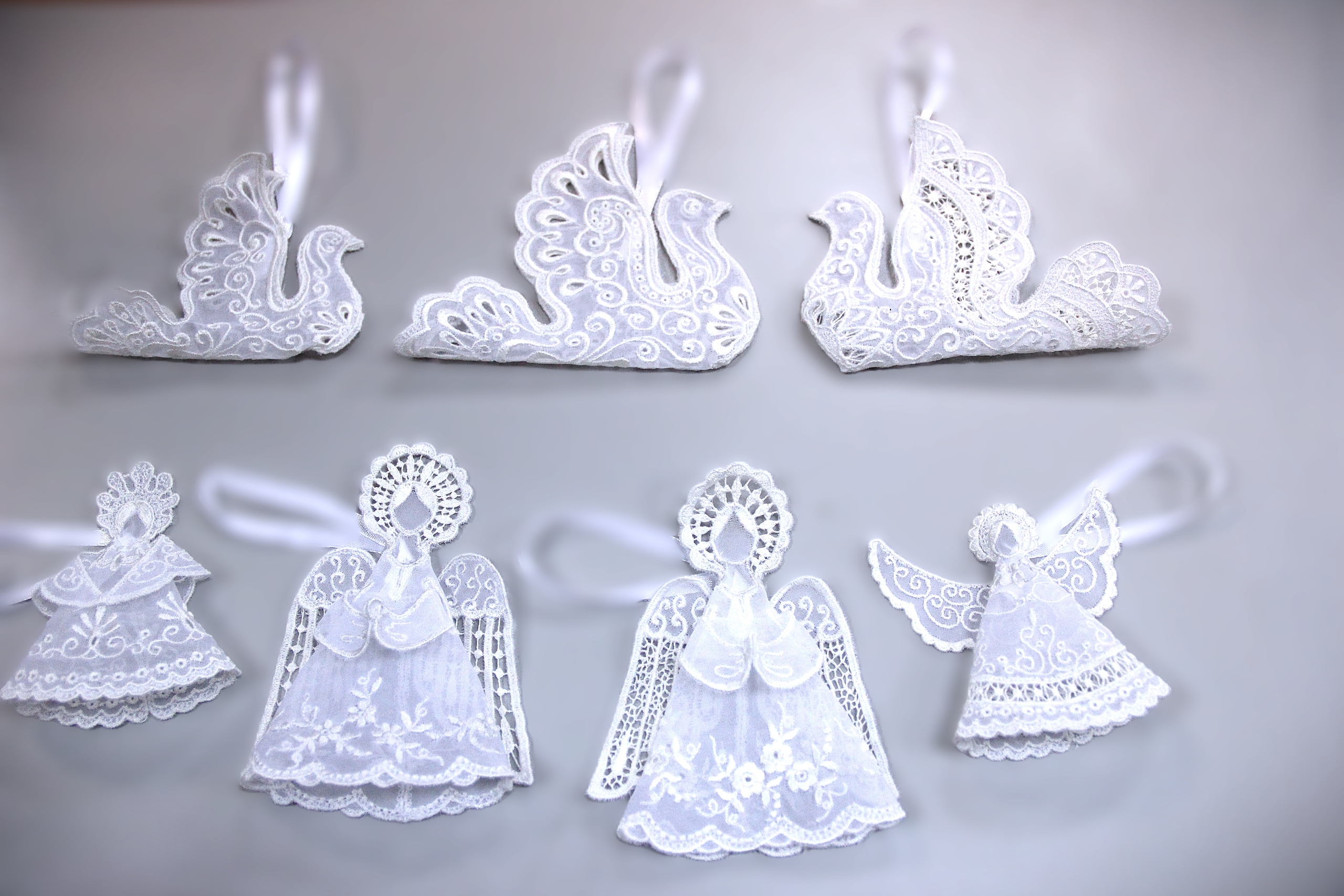Эксперты отметили интересные коллекции изделий в новогодней тематике «Кадомского вениза» и михайловской «Труженицы»: наборы скатертей, столешников, дорожек и салфеток к праздничному новогоднему и рождественскому столу, изысканные аксессуары к вечерним женским нарядам — кружевные воротники, вышитые ажурные белоснежные колье, а также уникальные ёлочные украшения.