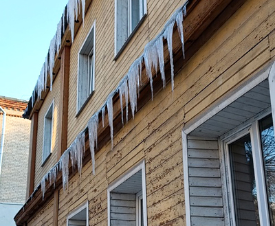 – толстый слой наледи и обледенение тротуаров также свидетельствует об образовании сосулек на крыше