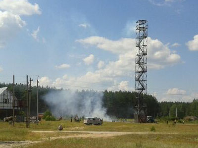 30 июня в деревне Деулино Рязанского района в ходе осмотра ответственными лицами прилегающей местности с наблюдательной противопожарной вышки загорелась сама вышка. Как сообщили местные жители, в настоящее время сотрудники МЧС тушат пожар.
