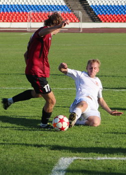 ФК «Звезда» 23 августа в Рязани на стадионе ЦСК провела домашний матч первенства России по футболу среди команд второго дивизиона (зона «Центр») с единоличным лидером турнира белгородским «Салютом». В турнирном отношении гости выше хозяев, как минимум, на голову. Такое же превосходство — и индивидуальное, и командное — было у «Салюта» над «Звездой» и по игре. В такой ситуации всё решает настрой и самоотдача команды соперника. Надо отдать должное игрокам «Звезды», которые перед своими болельщиками очень и очень постарались не упасть в грязь лицом. Видя такой настрой, её величество фортуна благоволила нашей команде.